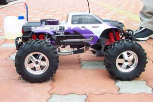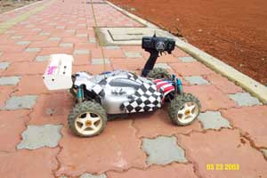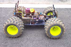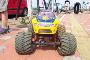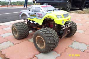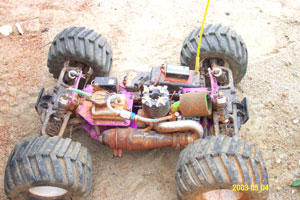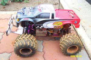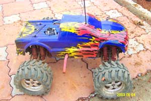 大魔神~~ 操它好幾年就是操不壞... 大魔神就是隱密者加上大腳胎和車殼,隱密者是1/8越野車的最長壽車種,耐用度自然不在話下,不然早被淘汰了,但是越野車改的普遍的缺點就是扭力不足! |