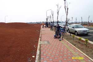 越野車也來插花了... 越野車輪小容易陷入鬆軟的紅土,底盤太低就擱淺了,英雄無用武之地呀,還是大腳厲害!! |