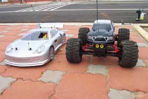 右為大腳車溯溪之父 左邊的KYOSHO QRC就是大腳車溯溪之子 |