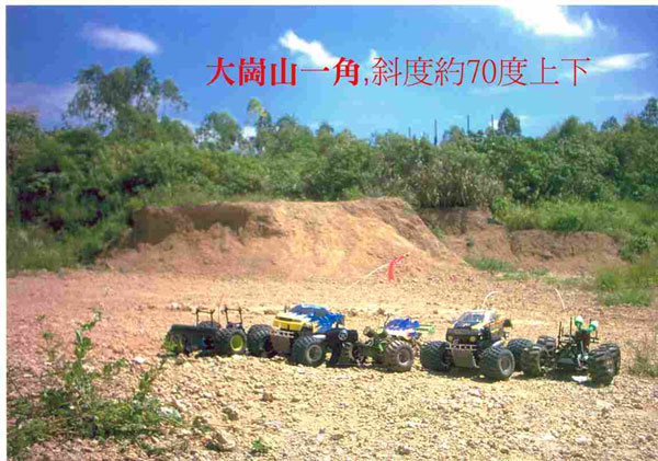 如大家不嫌棄,由小弟來邀請各位大腳前往大崗山征服真正大腳該走的路,千萬別再讓您的大腳像小狗一樣總是在草地上追逐,大崗山的場地崎嶇不平,有困難的70度爬坡,也有鬆滑不平的砂石路,自製35度跳台也不落人後,還有還有需要技術的好漢坡.......通通等著想挑戰極限的高雄好漢...