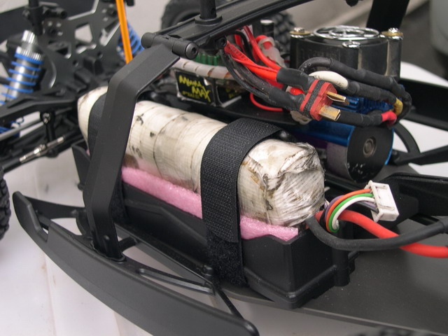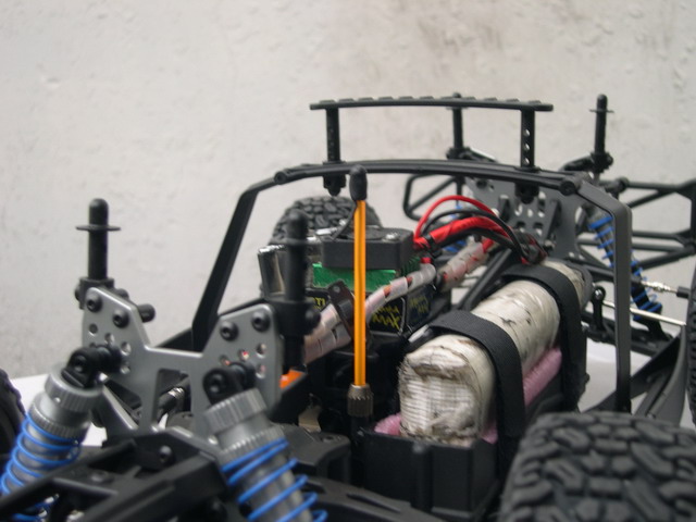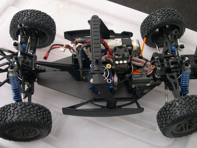 前後避震板適合金鋁,搭配4隻鋁金屬避震器,感覺不錯喔,前後斜肋是硬塑膠,做成Y型閃傳動軸,這真是太有創意了^^