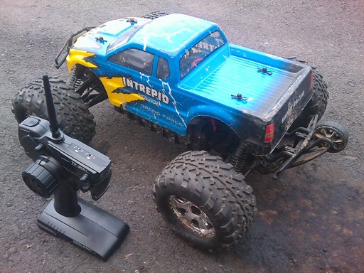 『總算小見識到SAVAGE FLUX HP無刷的"暴力"!』下午休息趕快依邱sir指示,把該加強扭緊的螺絲等等弄好(順便將齒輪箱裡面塗些黃油),再加上第五輪(還好有給它鎖上去),還有電池盒黏貼保護貼片,ok啦!試車囉!