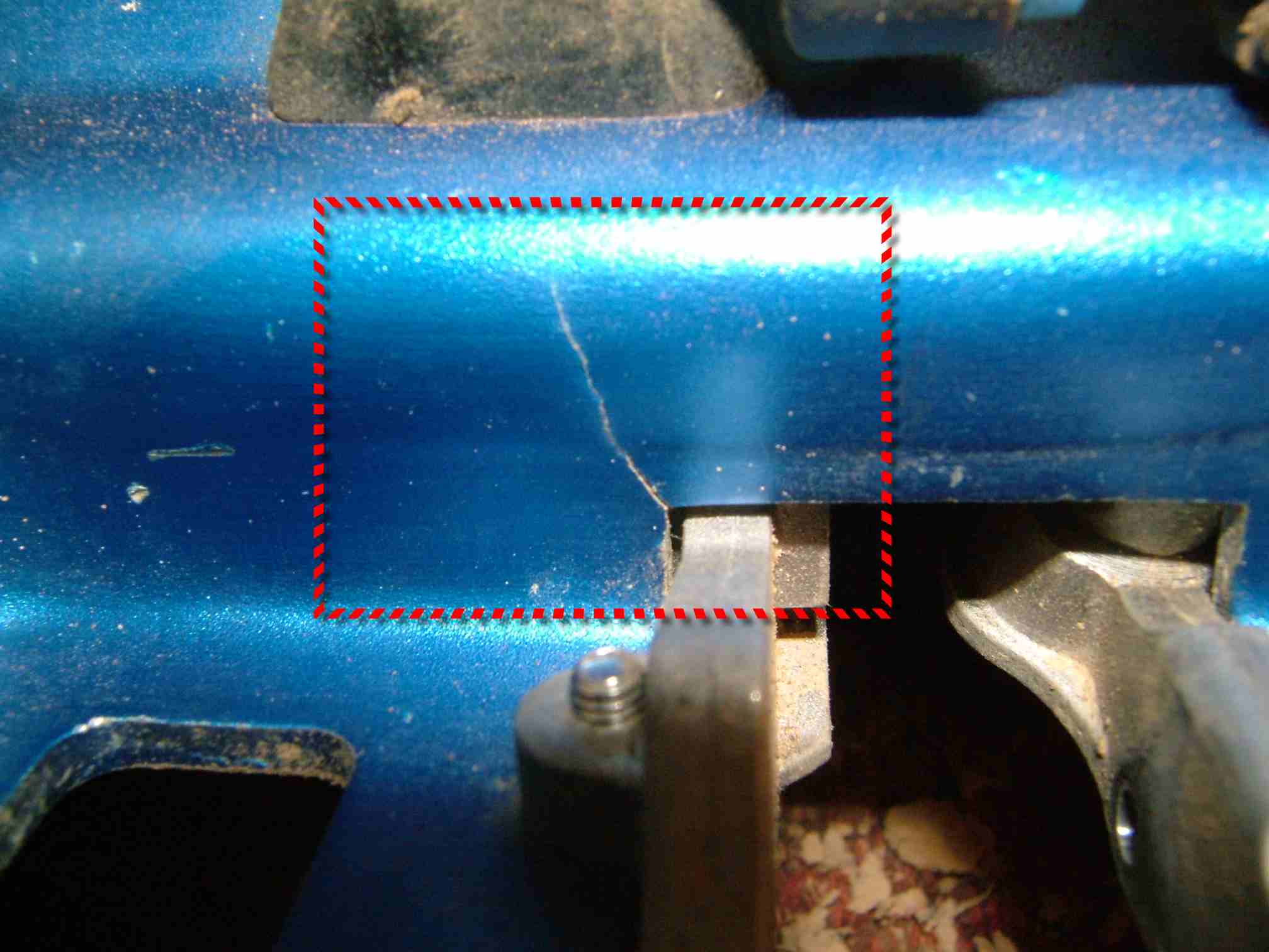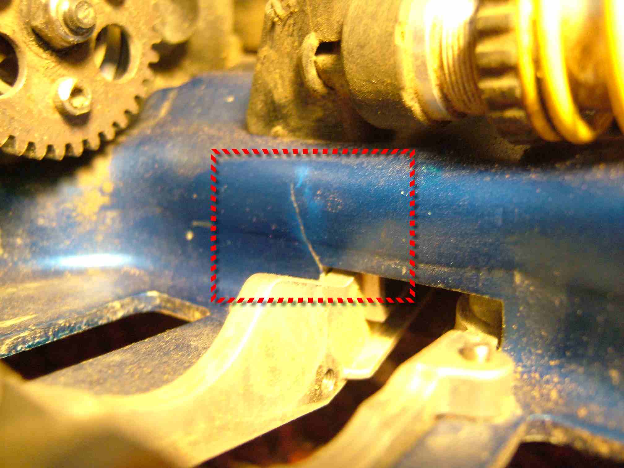 ![]() wan0761兄: 你可先將裂縫旁邊的陽極處理部份磨掉,然後再拿去點焊,順便做個補強,依你的破壞力,應該再多準一台REVO。 | ||