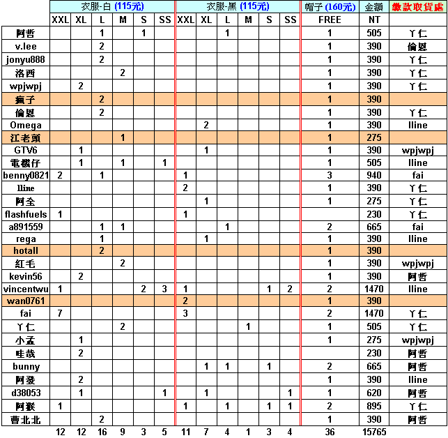 數量已經統計出來囉!!衣服115元,帽子160元