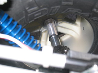 『Tamiya TLT-1 換 savage 的胎』之前用2.2的胎,爬樓梯時都因軸距太長都容易肚子卡住,於是想要換大一號的胎,可是網路上都找不到12mm轉14mm hub的adapter,所以用鋁的螺絲來改