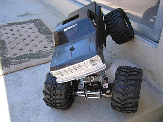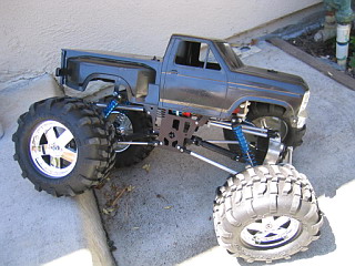 缺點: 轉向不易,因為原己改tobee craft的32mm套件,再加上1吋的螺絲,己外擴57.4mm,雖然己改較高扭力的servo,但還是不足,可能前差的鎖定要解開會好一些,齒比也己改用 0.4 metric 20 : 128,配上venom firball 21 t 的馬達稍有不夠力,可能用27t 的會好一些,原有的e-maxx避震器不夠長,車身會卡住輪胎,