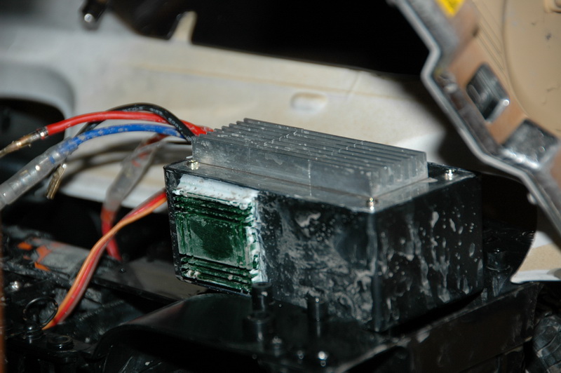 ![]() 其實沒有那麼要求的話 就只是在前面的上面,用斜口鉗剪出線材可以通過的缺口 然後加上矽力康黏死,反正除非電裝部分壞掉 不然也不會再打開了,只靠那個鋁質的上蓋+散熱片就已經足夠了 散熱片我這個是已經有貼上雙面膠的,如果沒有的話,自己另外用雙面膠黏就可以了 黏的時候,先用吹風機把雙面膠吹熱,讓膠質有點融的感覺再黏 就會很牢固了,像我只用散熱片把整台車子抓起來都沒有問題的 不過吹完三熱片很熱,不要直接用手拿,會燙到 | ||