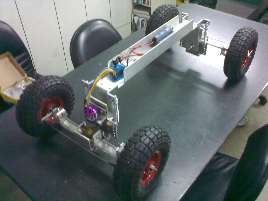 ![]() 因為第一次設計~很多地方沒考慮到~像是輪軸太細~車身只能扭轉不能上下避震~整台重量有10多kg~轉向伺服力量根本不夠~要再修改也沒那麼多財力~所以沒辦法把精神花在這台了~跟各位說聲抱歉 現在我已經敗了rock force 2.2~接下來我可能把它改到全長60~70cm~大家拭目以待囉 新手駕駛 | ||