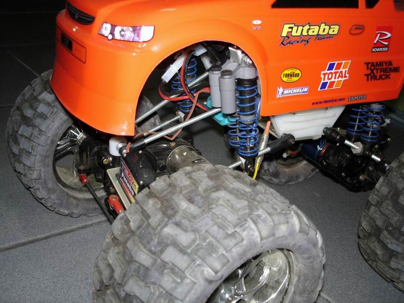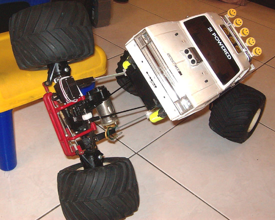 ![]() 阿偉大:你的大怪胎真帥.讚!! 大怪胎的玩家一般都會使用兩顆電變.因為雙馬達電變在前後輪阻力不一樣的時候.電流會往負載比較低的馬達去.結果就前後馬達不同步.引響攀岩能力.您參考參考. 還有..........駕駛座太高了.要坐直升機才能進去吶 | ||