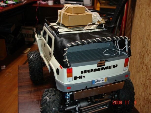 ![]() 該內容引用 jefferyhou 在 2008/11/3 下午 07:24:10 發表的內容: 幾天前買了一個悍馬殼.只有殼和幾張貼紙 上完漆後.好像有點單調.... 所以...我就替我的小車車做了後斗的帆布棚... 車頂置物架...前保桿...照後鏡..還有貨架上的一些小物品 哇賽....水哦~ ![]() ![]() ![]() 車殼部份給您99分...若燈光也裝上去的話...就滿分了~~ 不過說真的age的車身就算裝上在像真的車殼..行走動態還是差了點.. 這麼大的落差....爬起來光是不會抬腳..看起來就總覺怪了點~~~ 沒惡意哦...只是大家都是同好.說出來參考罷了..不過還是水啦~~~ | ||