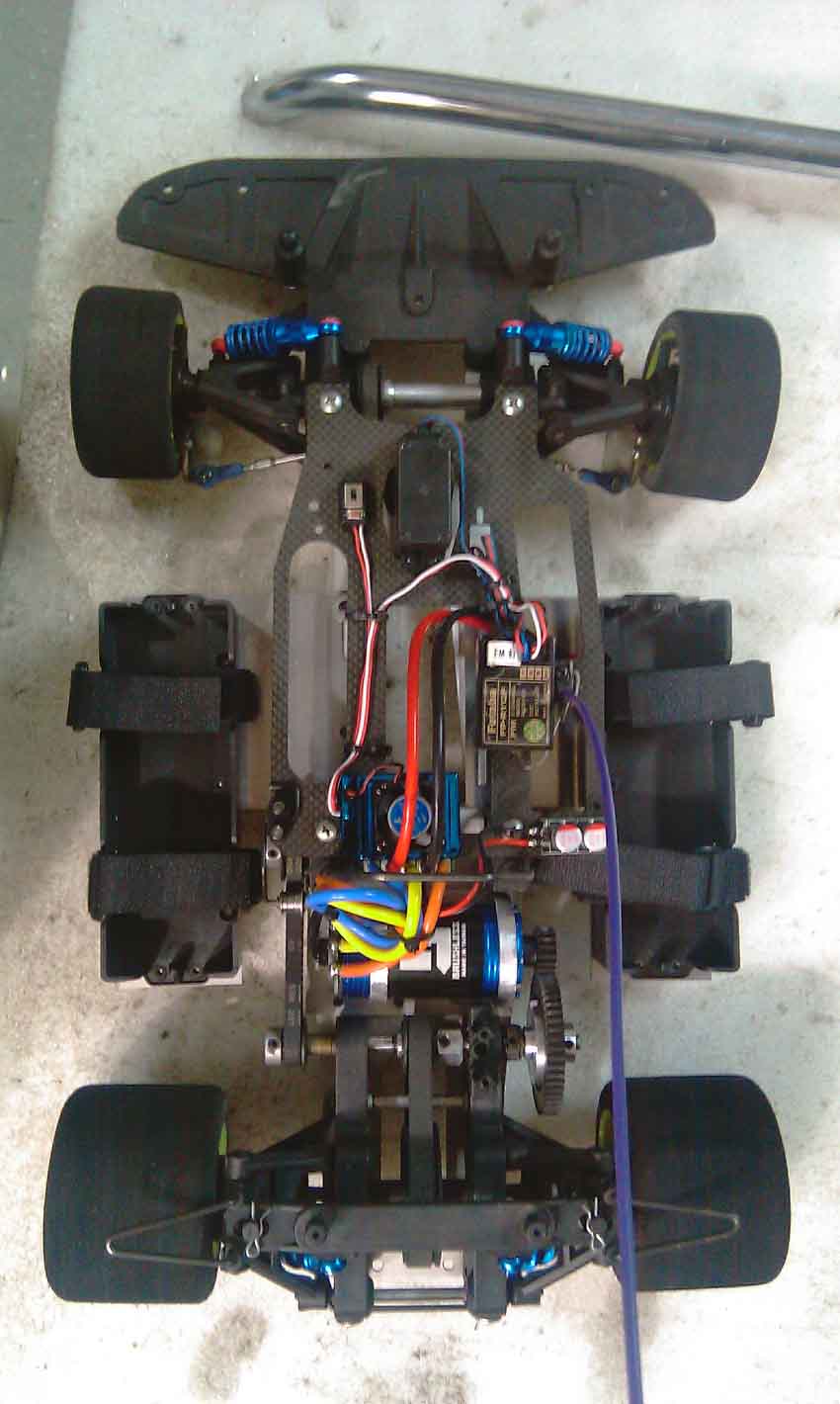 ![]() 基本配置 齒比6.6-7.2 馬達KV4200---興益電機-3674-540XL 電壓11.1V-----5200MAH-45C暴力電池*2(並聯)...應為要左右平衡 TURBO開6500KV----好盈120A電變-2.1版 輪胎直徑8CM ----- 海綿胎 全配重量3000g - 3200g 含電池與車殼 預估時速160KM左右 | ||