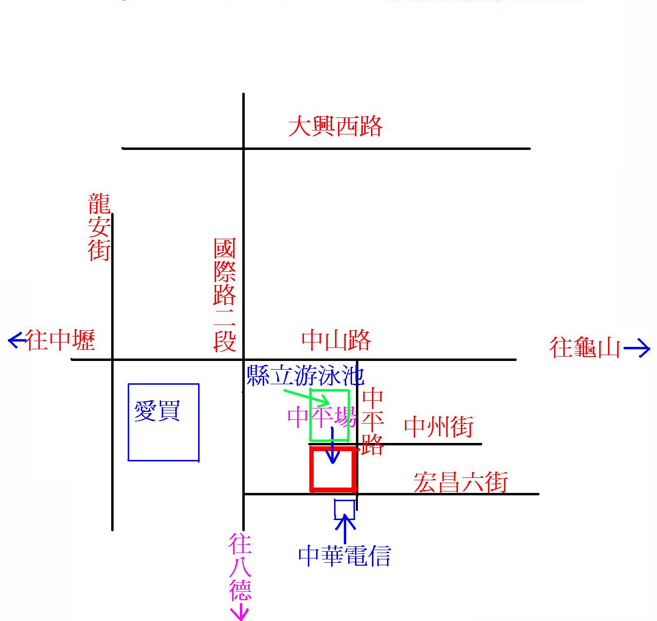 地點:桃園市中平路與中州街與宏昌六街處(中華電信正前方..縣立游泳池旁)