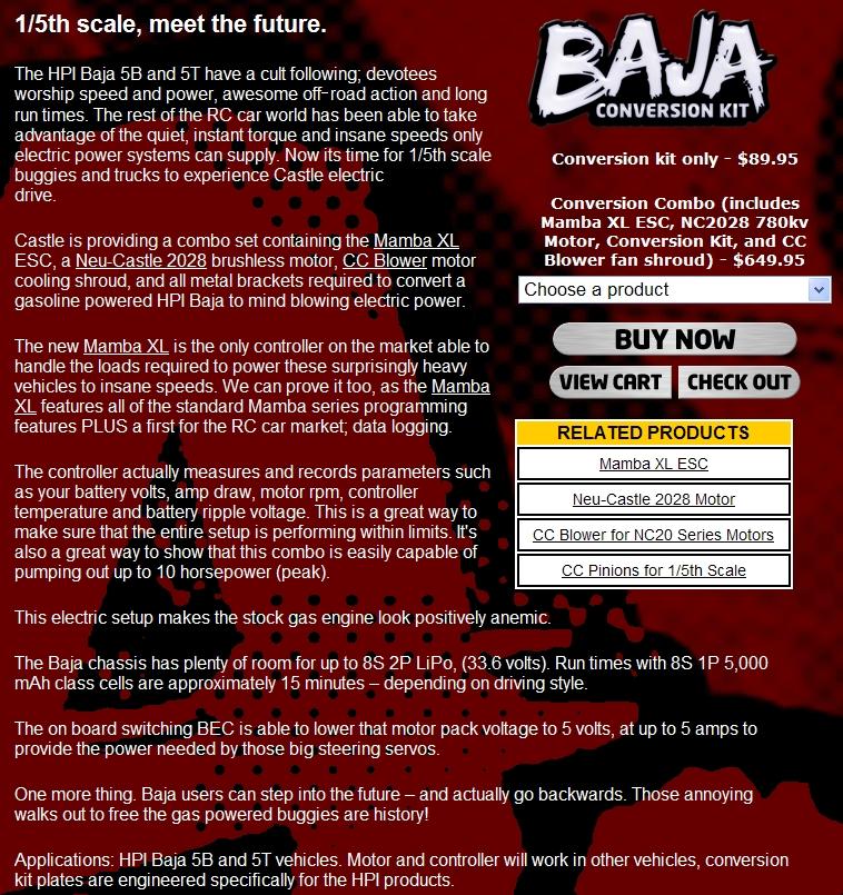 『1/5 BAJA CASTLE 油改電套裝版出了 』