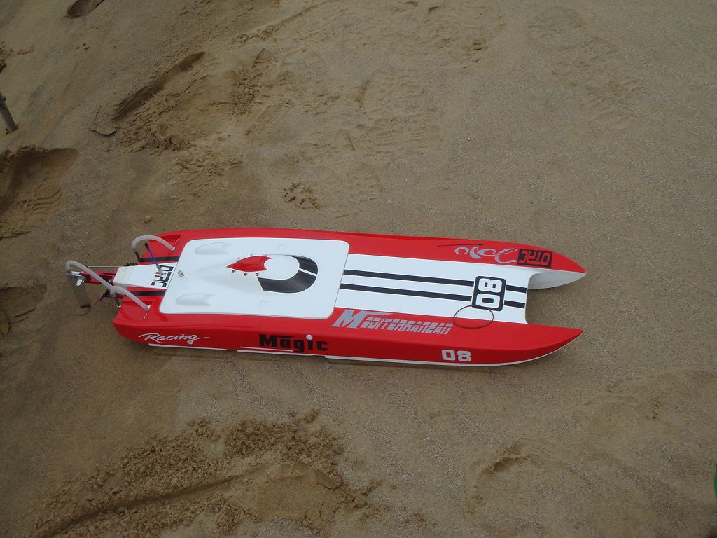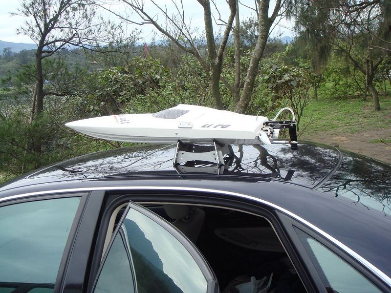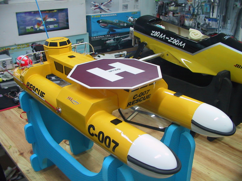 ![]() 是好盈車用套裝去改的,電變加水冷片,馬達是2千KV那棵. 不過, 船主下水跑不到1分鐘,就跳保護了. 慘! | ||