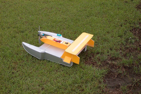 ![]() 目前尚未試水面起飛 不過水的阻力比草小起飛應該沒問題 我的像機沒有錄影功能耶 不過推力比一定要大於一才會穩因為它沒有翼型 我要再做一台後推的 前拉的我覺得不好看 到時候在去碧潭試機 沖沖沖洗澎澎來去溯溪 | ||
