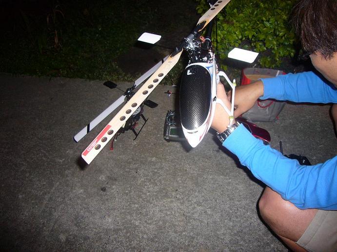 我又升級了全金屬了, 晚上去試飛 尾巴又鎖不住..免強停旋三棵電池發現..我決定了 把原場的陀螺給換掉...