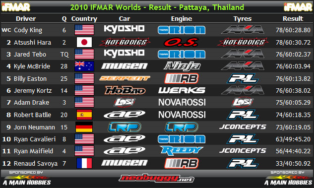 『2010世界賽』2010世界賽所有參賽車種與引擎使用數: