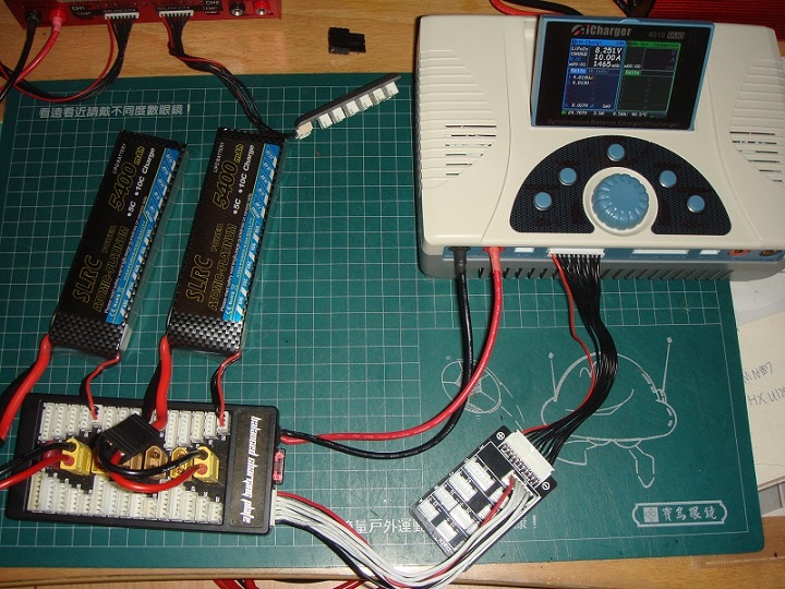 我先用並聯板並充兩棵 7.4V 5400mAH電池, 我設定 10A充電.