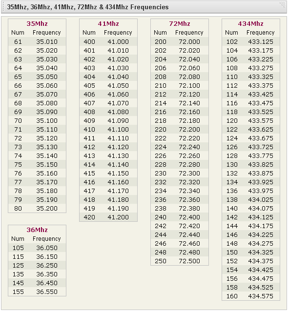 從RCTek上抓下來的,參考參考,據我所知標準頻道以後的叫特頻,標準頻道中間的叫插頻,特頻人人買得到,只是衝到的機率比較低