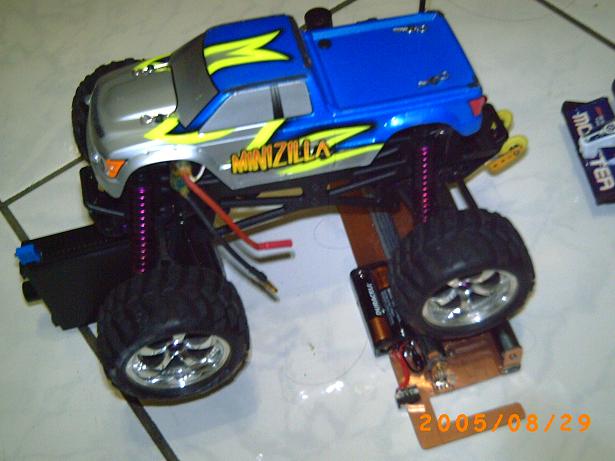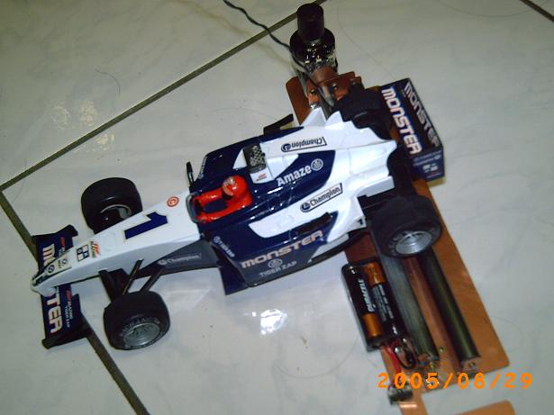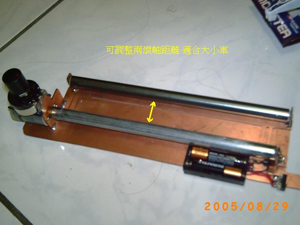 如何模擬重力摩擦呢 其實只要將車子放上滾軸[先不固定] 開約 1/2 油門 然後調整 VR 讓其車子大約快要離開 滾軸 這就很接近車子落地時的動能損耗[這只是 DIY 版 別奢求它會超準]