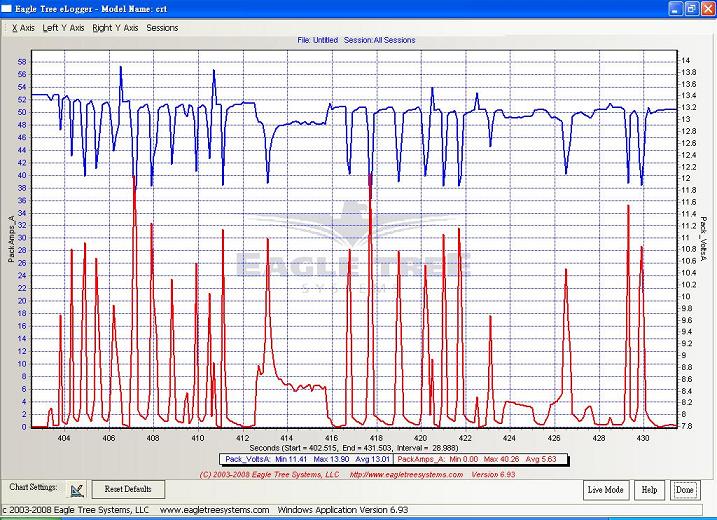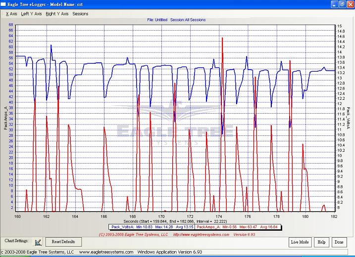 所以首要課題是分析車子在操作時的電流變化, 以HN CRT + Himax Car8 + 4S1P/A123 為測試對象,