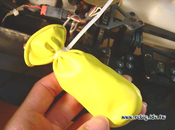 接收機防水處理,只要去買個接收機用的氣球,大小和接收機一模一樣,做好萬全的防護措施後,大腳車要去溯溪還是飆砂就可以玩得很安心了