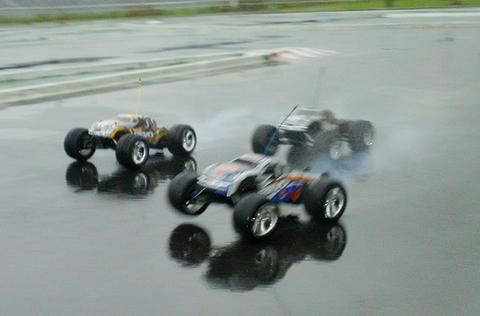 ![]() 888的大 把你的E-MAXX 當前導車 讓我們追啦 反正 有防水 (好像ESC放到水中都還會有保護) 把接收及伺服機作一下防水處理就能享受了 大腳在雨中甩尾過彎 滑來滑去 不會翻歐 | ||