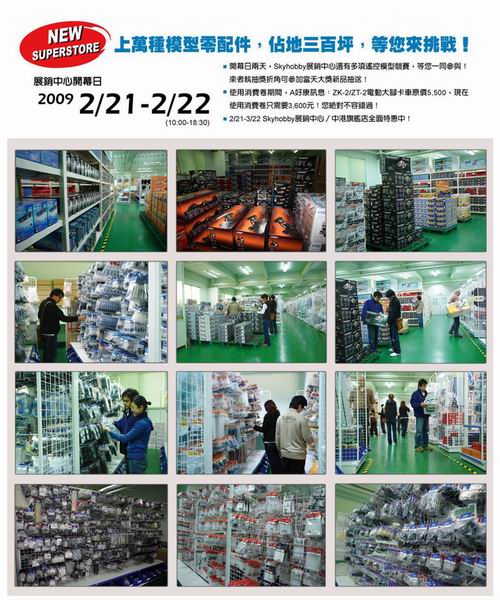 雷虎科技繼去年SKYHOBBY遙控模型直營專賣店開幕之後,今年又規劃出更大規模的實體展售通路──《SKYHOBBY展售中心》,而且地點就是在雷虎科技總公司大樓內,將三樓一整個樓層(300坪)規劃為專業的遙控模型展售中心,將來在周末假日開放營業,同時公司內部的停車場也會配合賣場營業時間,規劃成為臨時的遙控車場,讓消費者能夠即時體驗遙控的操控樂趣。