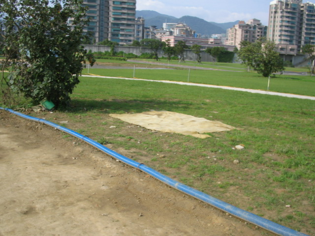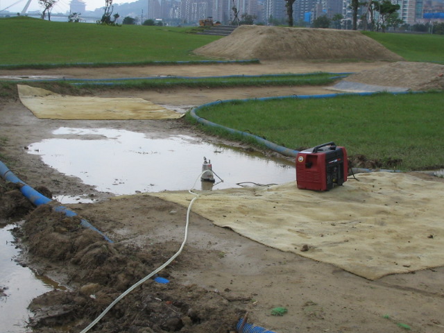 美堤積水處理完畢.明天早到的車友麻煩將放置旁邊曬乾的地毯歸位