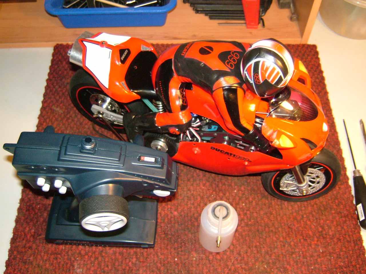 ![]() 第一次買摩托車,感覺還很美啦...不玩他,放著也很好看ㄋ!質感還不錯,8500很划算ㄋ!!我在x手買的,老闆說一台只賺300元,不要再殺價了!!模型的利潤,真的那麼慘嗎?? 魏sir說,這台比他那台電動版,強化了許多部份...我也不懂摩托車,但是發動後,還真有那麼一回事喔... | ||
