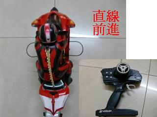 機車推出去,加油前進,遙控器右轉,機車開始右傾,遙控器即回正,