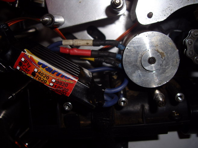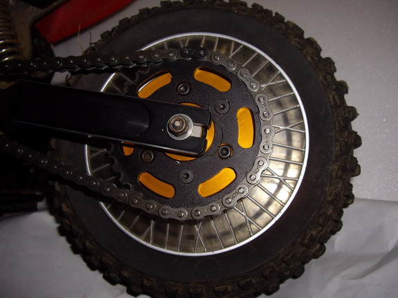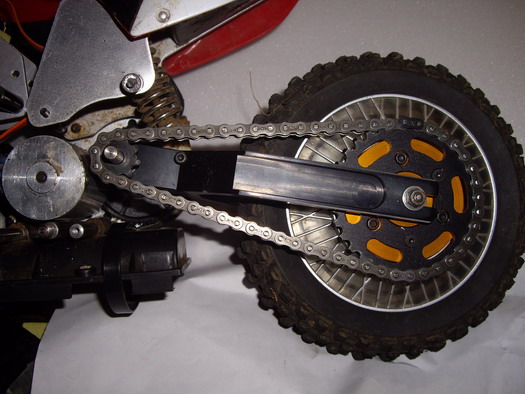 首先,原廠設計的皮帶傳動系統根本受不了無刷的摧殘。所以直接改成與實際車車相同的鏈條傳動,這可是大工程,所有的東西都得訂製,只有鏈條沿用雷虎1/5機車的料件。