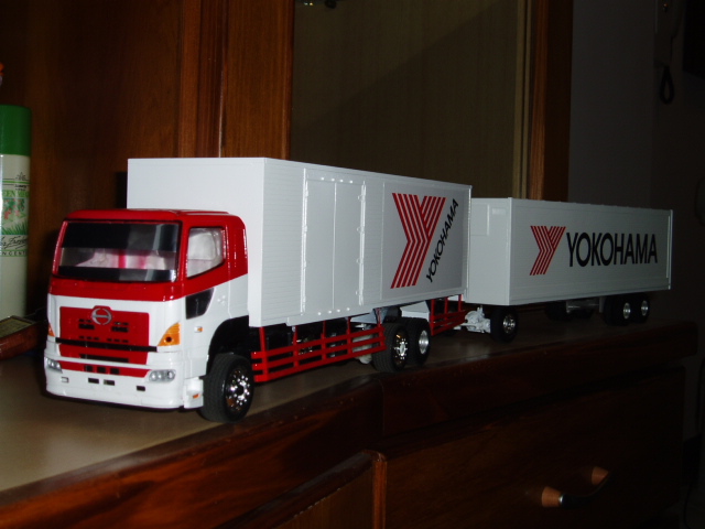 ![]() 阿偉你太客氣了~你的hino profia也很棒喔 我的第二節子車也是用1/32 aoshima靜態模型(貨櫃車40呎)改裝的,還加上一些自製零件.... 其實這台車只算完成90%,因為還有燈組及車体外觀的一些零件沒裝上..... 晚上有動態測試一下,感覺還不錯說~~不過我老婆說有點吵.. 另外你如果喜歡像大貨車、拖車這種的話,你可以上kyosho的網站裡面有一個fun model都有說 如果代理商有引進不知道有多好~~ scania | ||